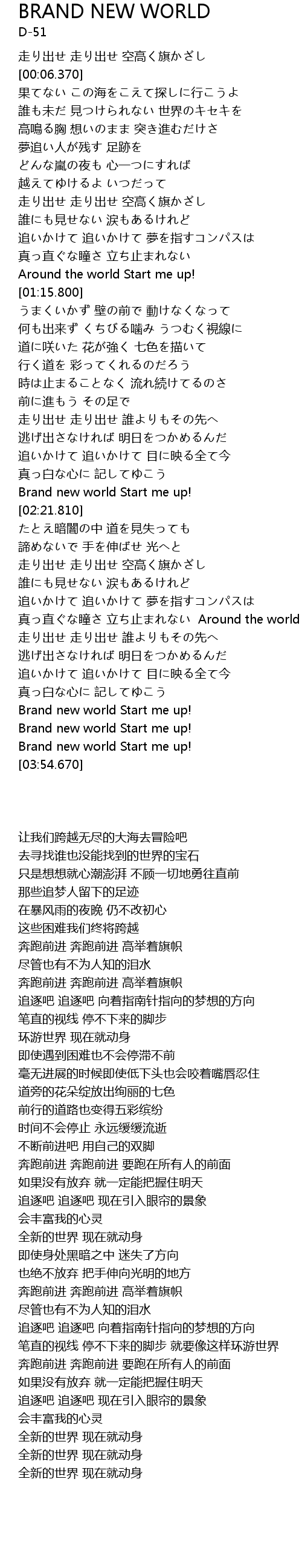 | [03:09.170] | 真っ直ぐな瞳さ 立ち止まれない Around the world |