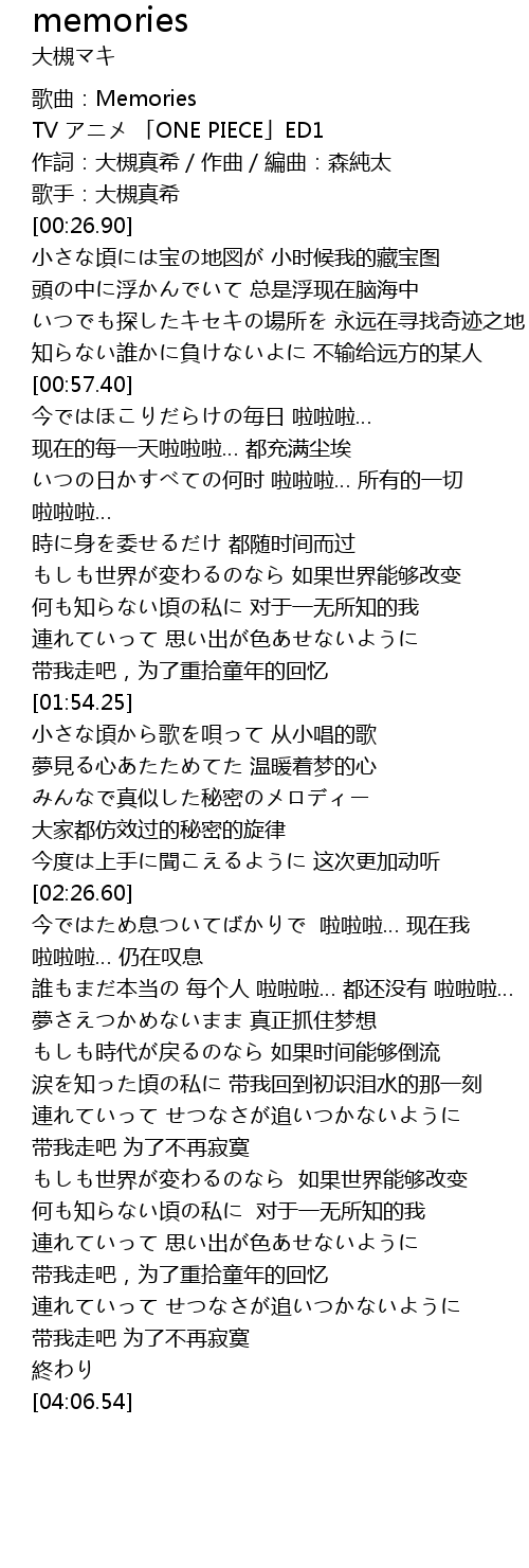 | [00:04.00] | TV アニメ 「ONE PIECE」ED1 |