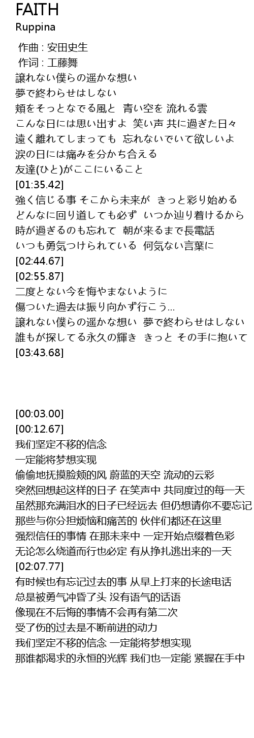 | [03:14.59] | 我们坚定不移的信念 一定能将梦想实现 |