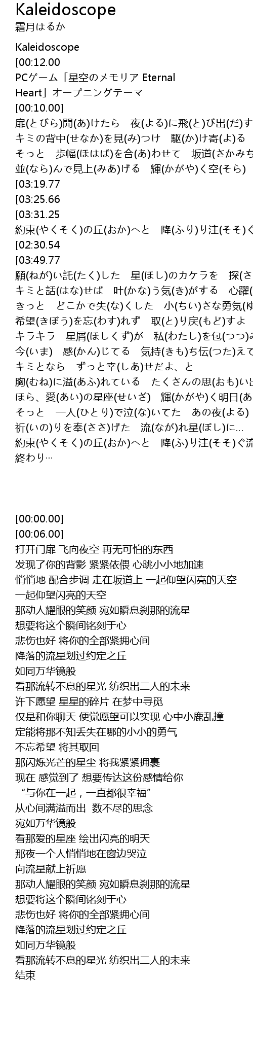 | [01:14.22][02:30.54][03:43.96] | まるでカレイドスコープみたい |