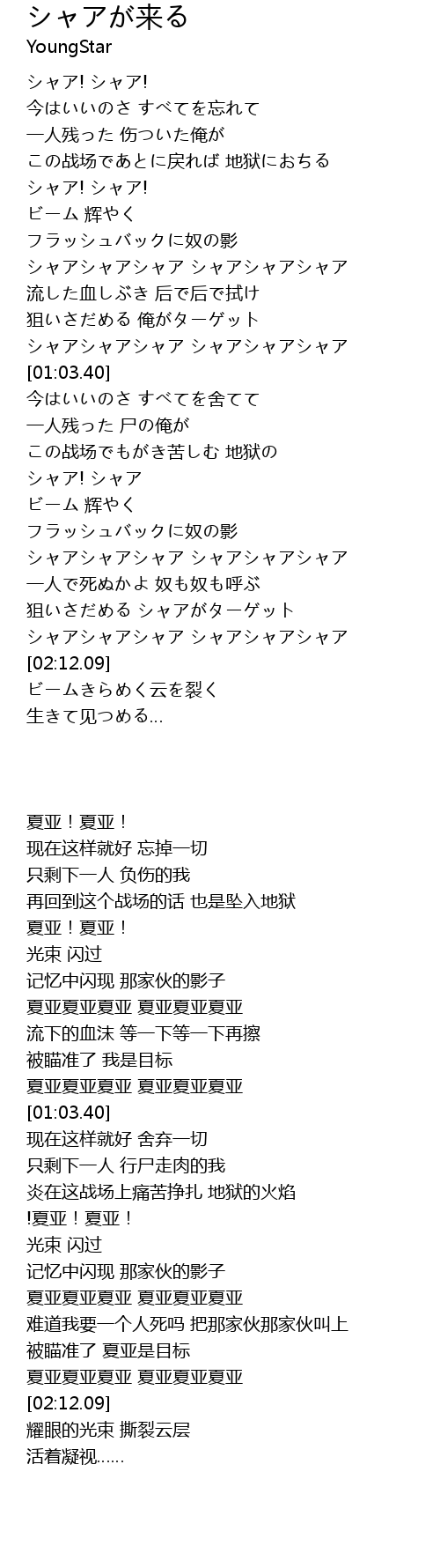 | [01:49.66] | シャアシャアシャア シャアシャアシャア |