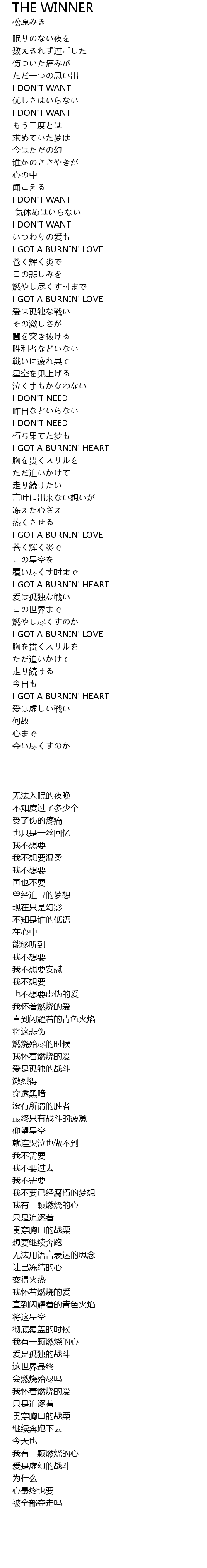 | 歌曲 | THE WINNER |