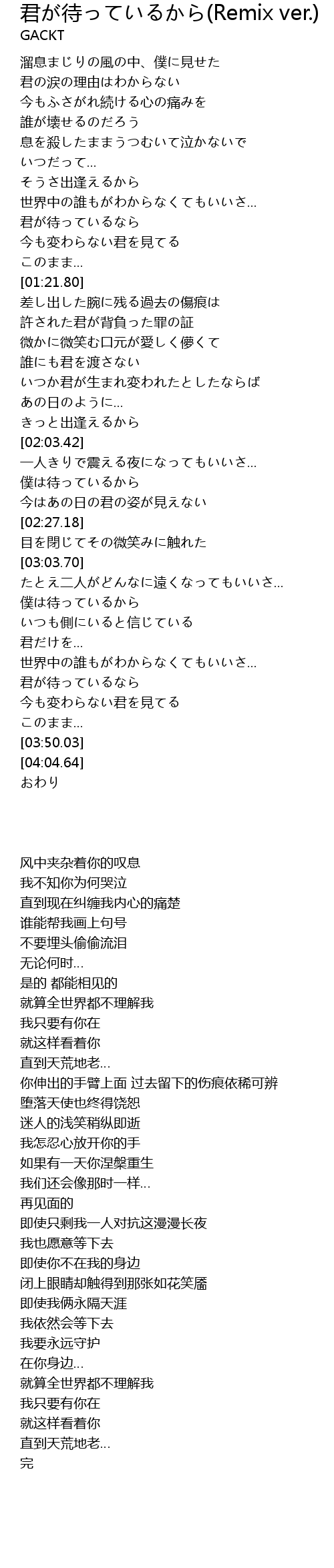 | 歌曲 | 君が待っているから(Remix ver.) |