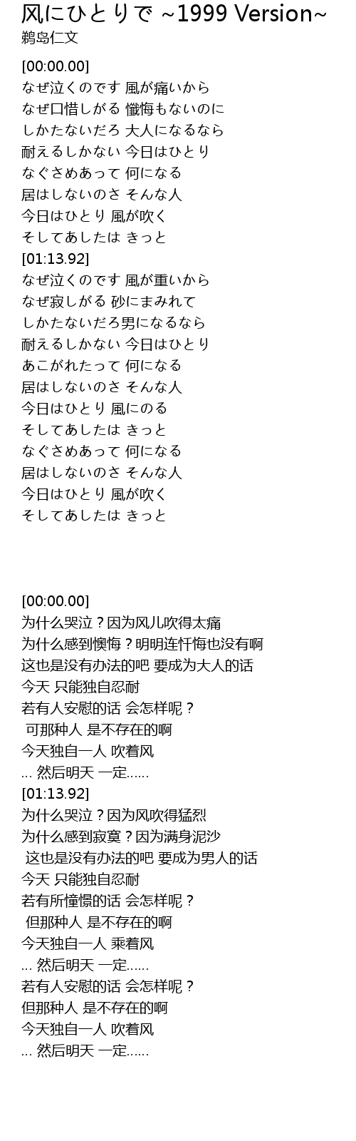 | [00:16.24] | なぜ泣くのです 風が痛いから |