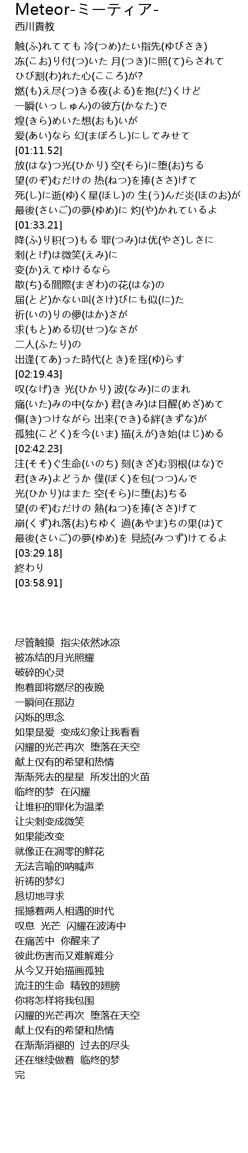 | [00:58.64] | 一瞬(いっしゅん)の彼方(かなた)で |