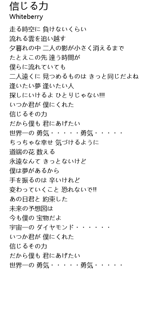 | 二人遠くに 見つめるものは きっと同じだよね | |