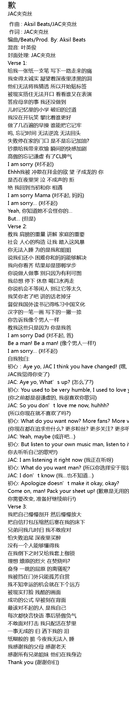 | [00:51.238] | I am sorry Mama dui bu qi, ma ma |
