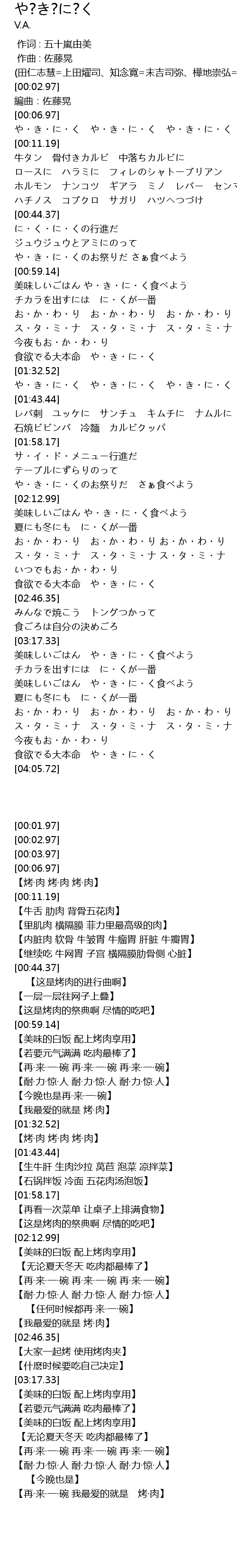 | [00:07.81] | や・き・に・く や・き・に・く や・き・に・く |