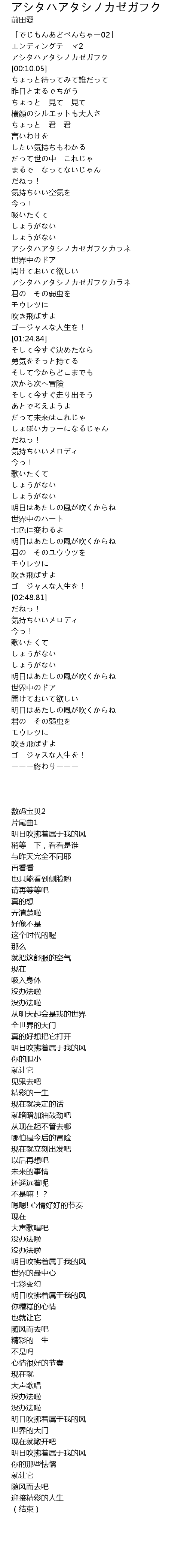| [00:48.09] | アシタハアタシノカゼガフクカラネ |