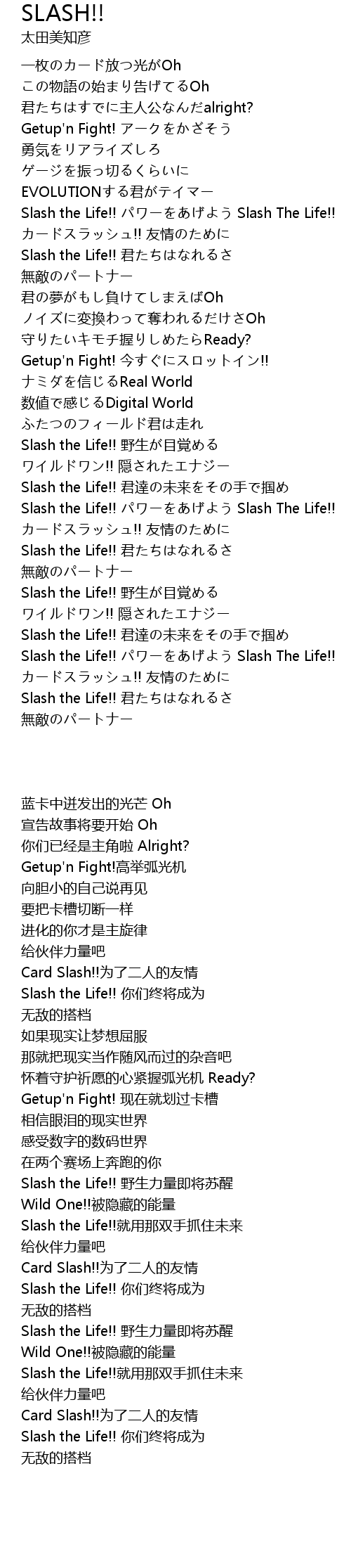 | [03:09.350] | Slash the Life!! Slash The Life!! |