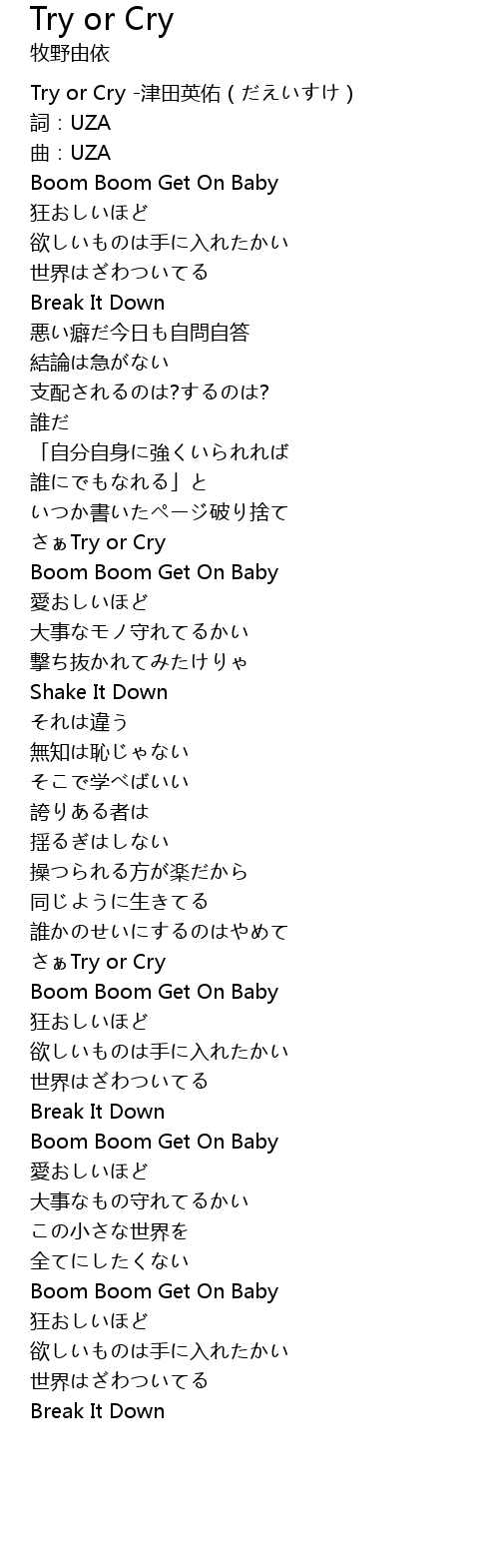 | [00:00.00] | Try or Cry -津田英佑(だえいすけ) |