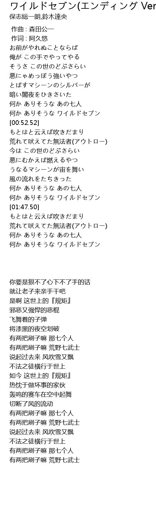 | [00:46.18] | 何か ありそうな ワイルドセブン |