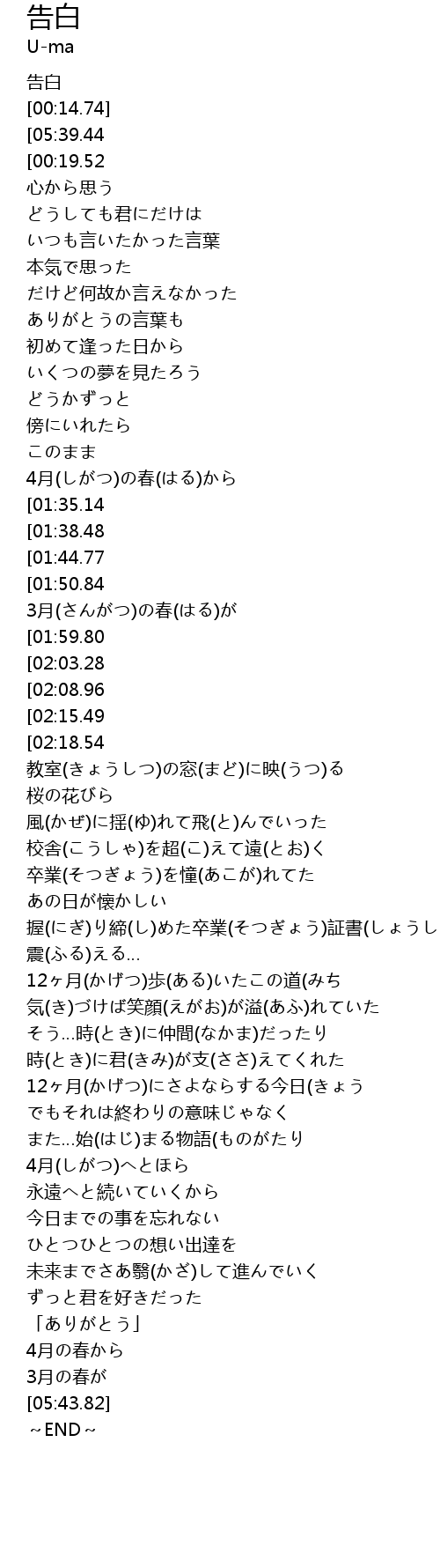 | [01:32.36] | 4月(しがつ)の春(はる)から |