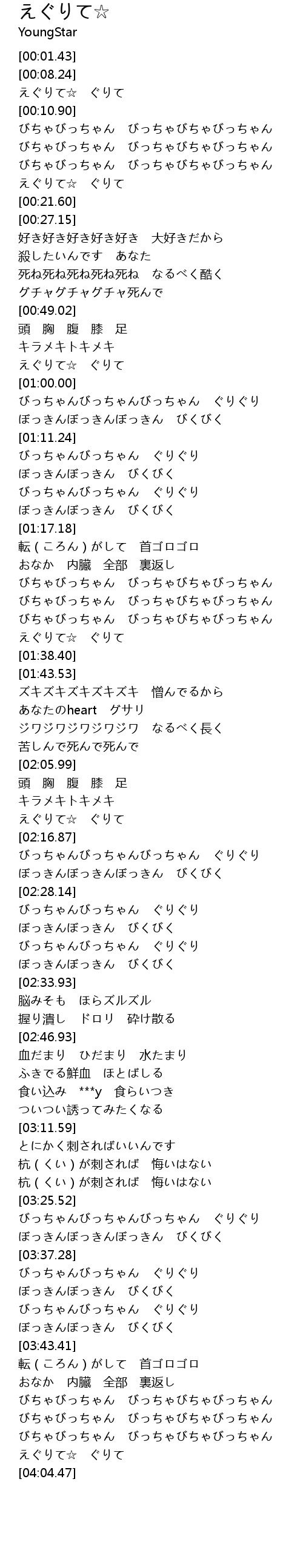 | [03:37.69] | びっちゃんびっちゃん ぐりぐり |