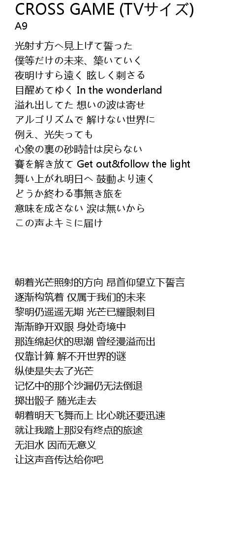 | 歌曲 | CROSS GAME (TVサイズ) |