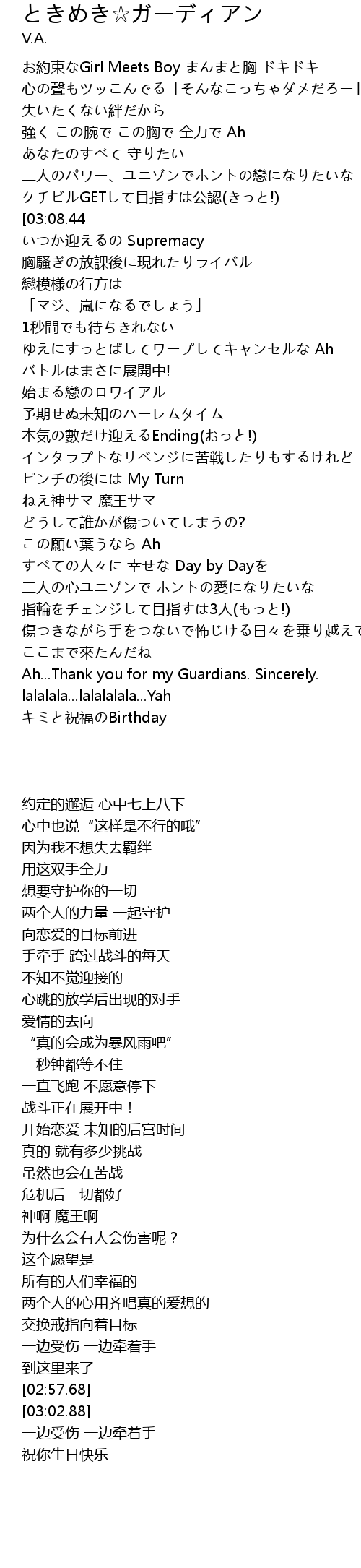 | [02:57.68] | Ah... Thank you for my Guardians. Sincerely. |