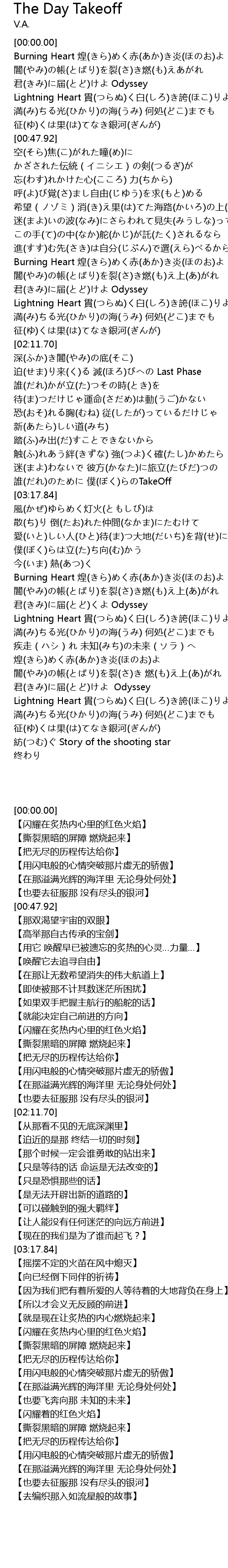 | [04:00.95] | Burning Heart 煌(きら)めく赤(あか)き炎(ほのお)よ |