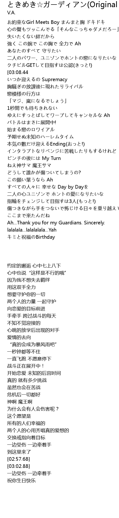 | [02:57.68] | Ah...Thank you for my Guardians. Sincerely. |
