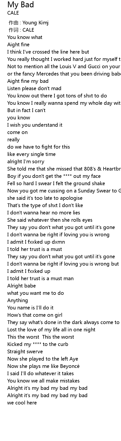 | [02:38.53] | Alright it's my bad my bad my bad |