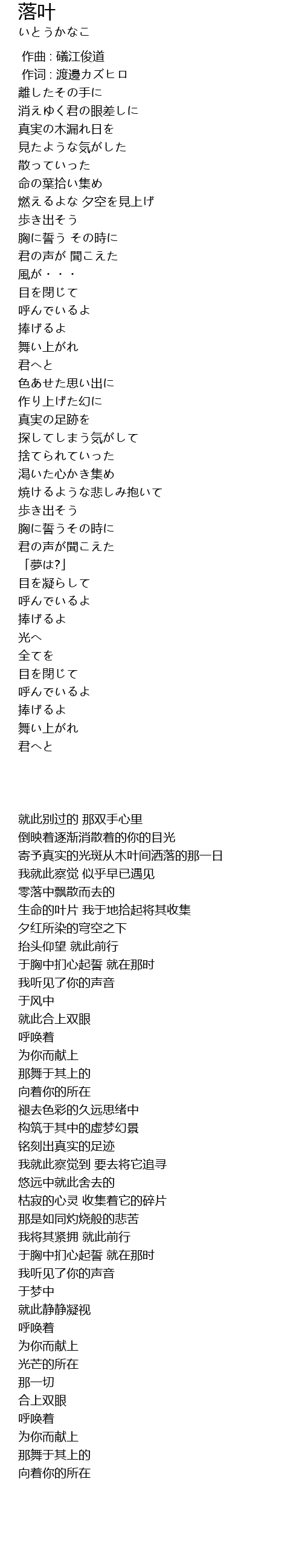 | 歌曲 | 落叶 |