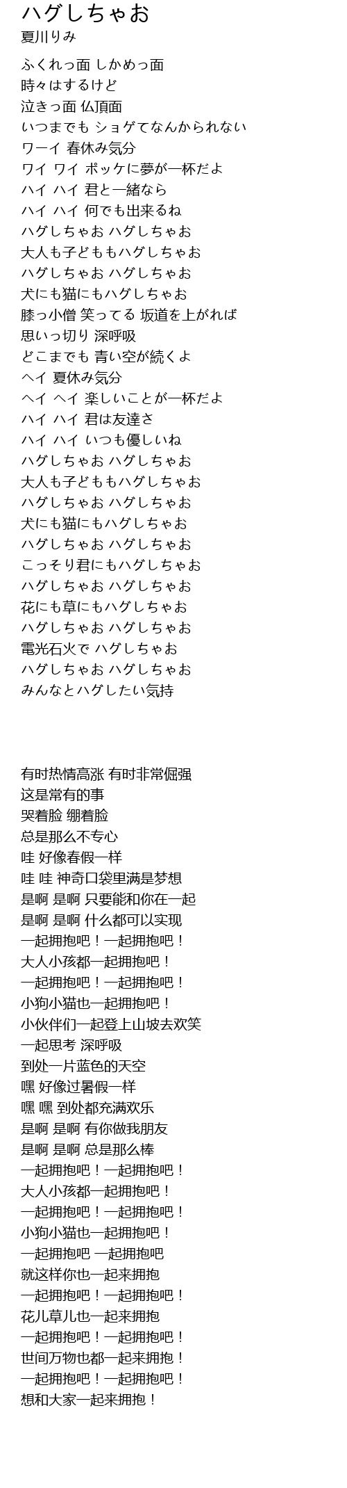 | [03:04.330] | ハグしちゃお ハグしちゃお |