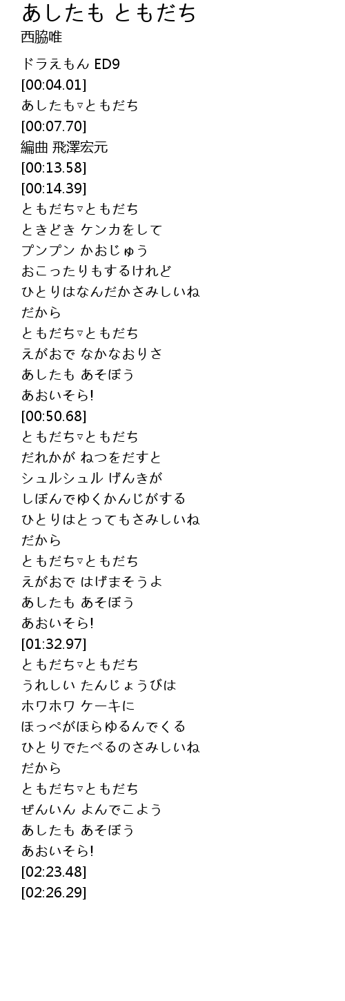 | [02:01.29] | ひとりでたべるのさみしいね |