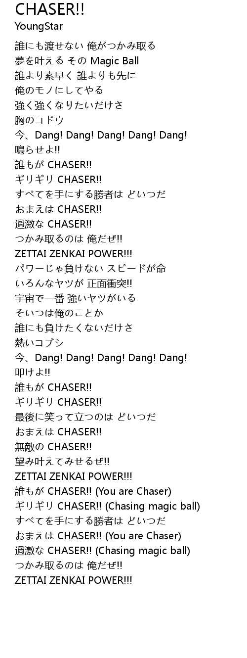 | [03:25.30] | 誰もが CHASER!! (You are Chaser) |