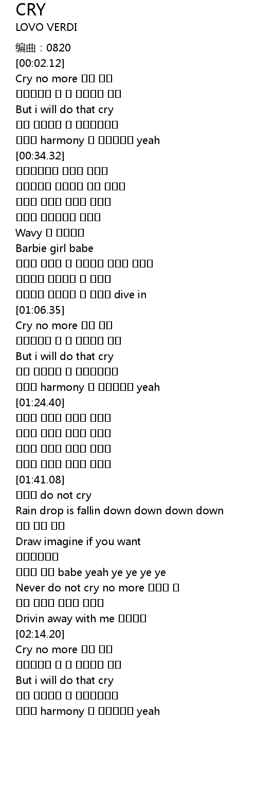 | [02:00.79] | Never do not cry no more 웃기만 해 |