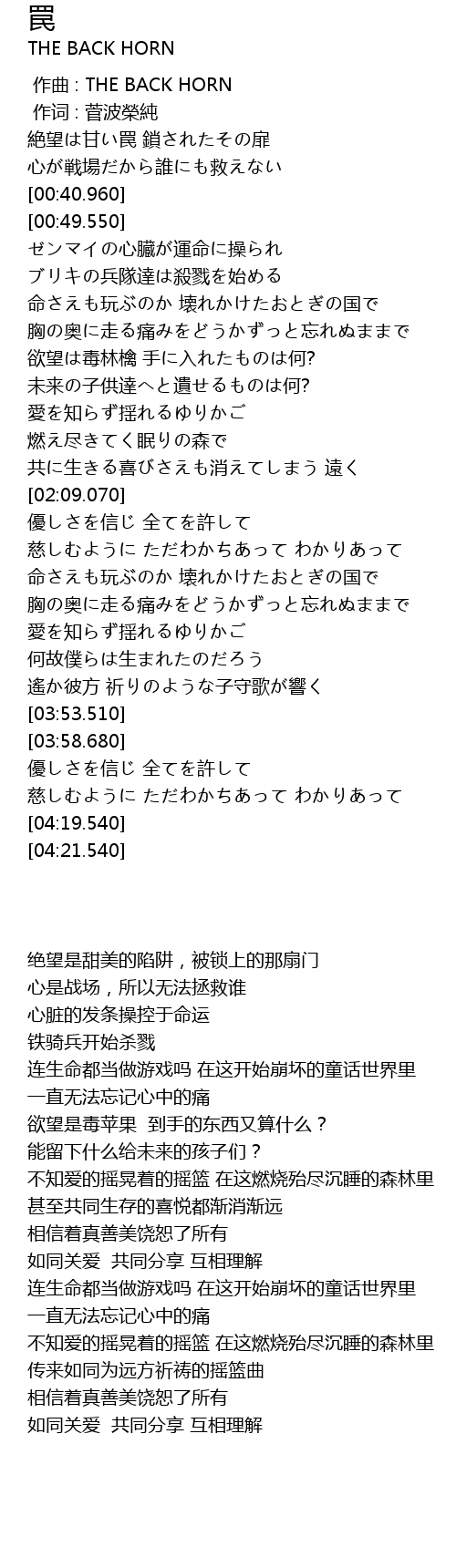 | [00:00.00] | 作曲 : THE BACK HORN |