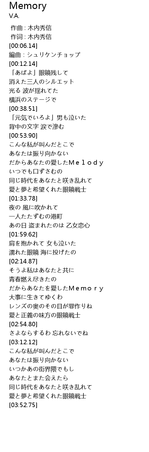 | [03:46.33] | 愛と夢と希望くれた眼鏡戦士 |