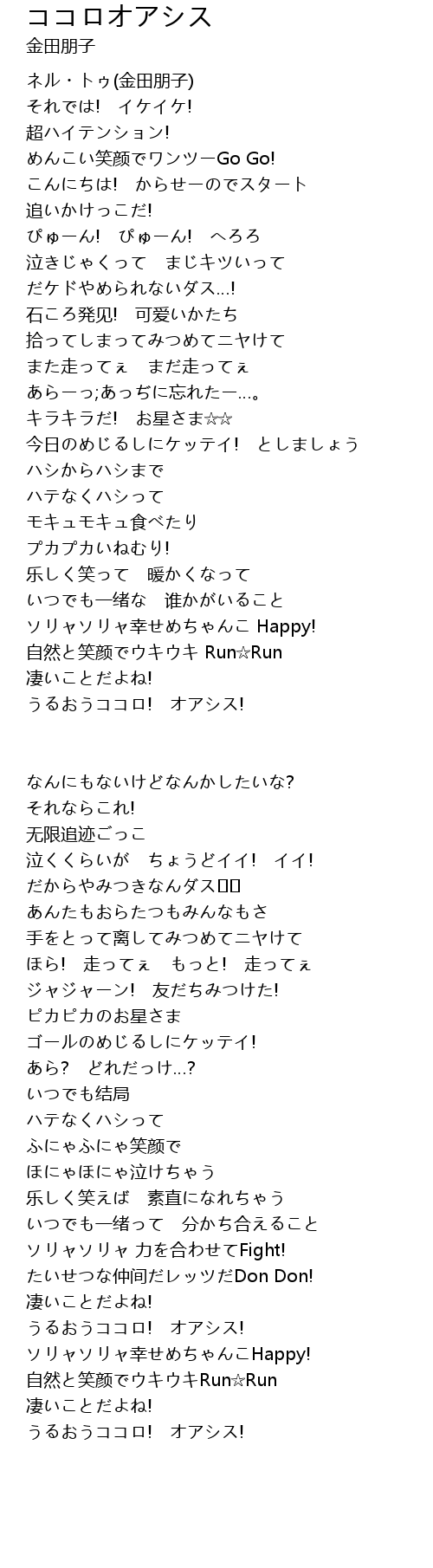 | 歌曲 | ココロオアシス |