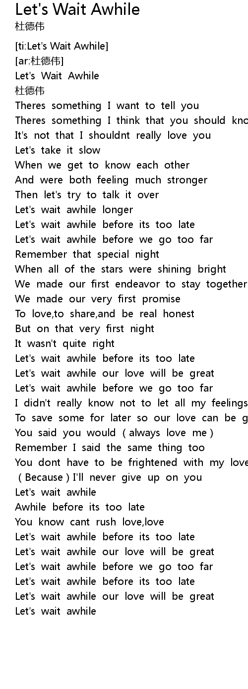 | [ti:Let's Wait Awhile] | |