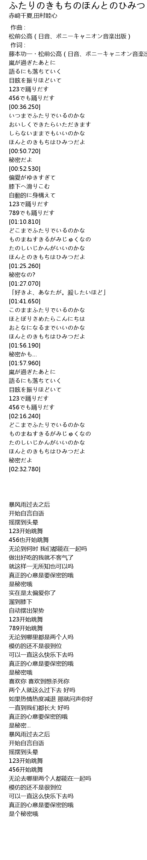 | [02:27.500] | ほんとのきもちはひみつだよ |