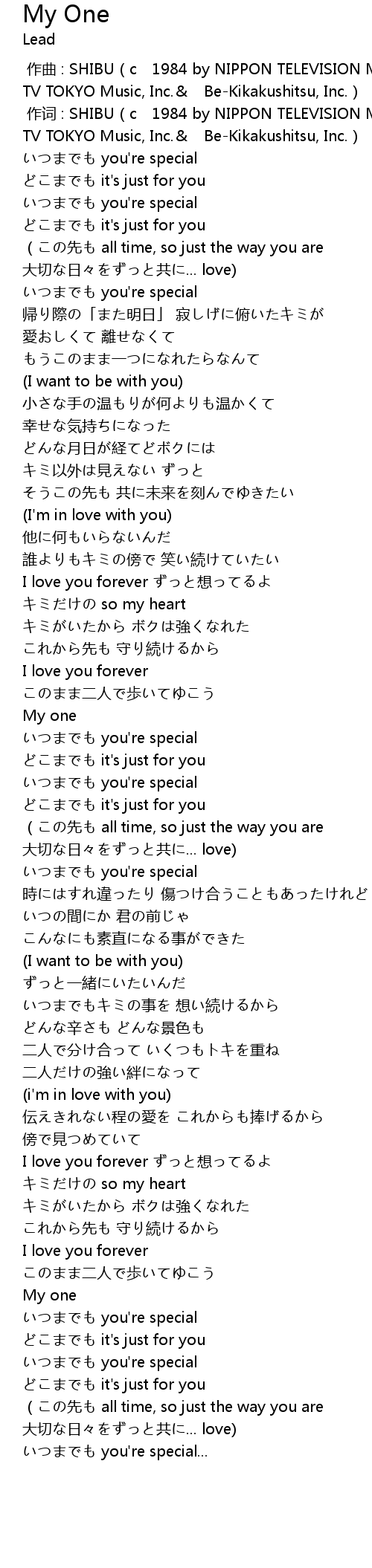 | [00:25.42] | いつまでも you're special |