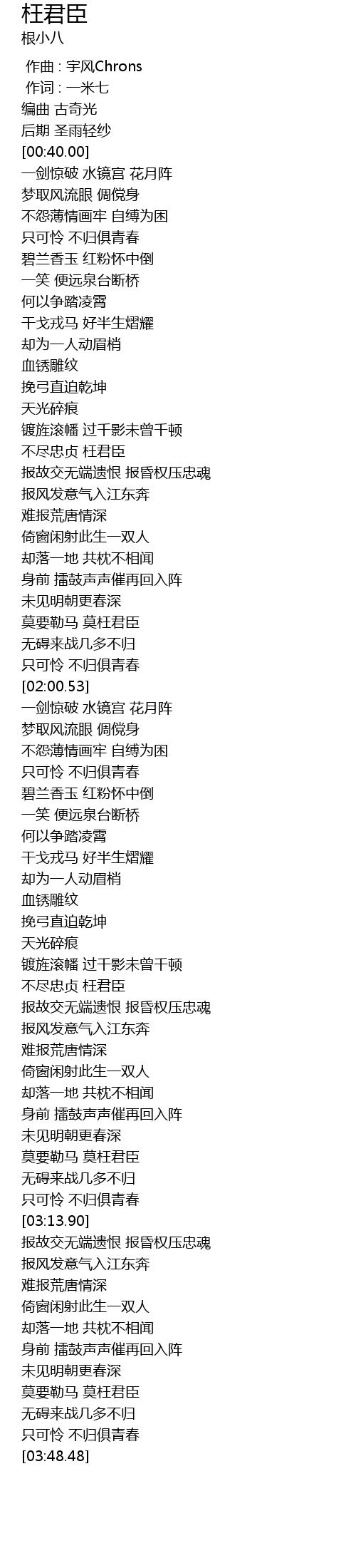 | [02:40.66] | 不尽忠贞 枉君臣 |