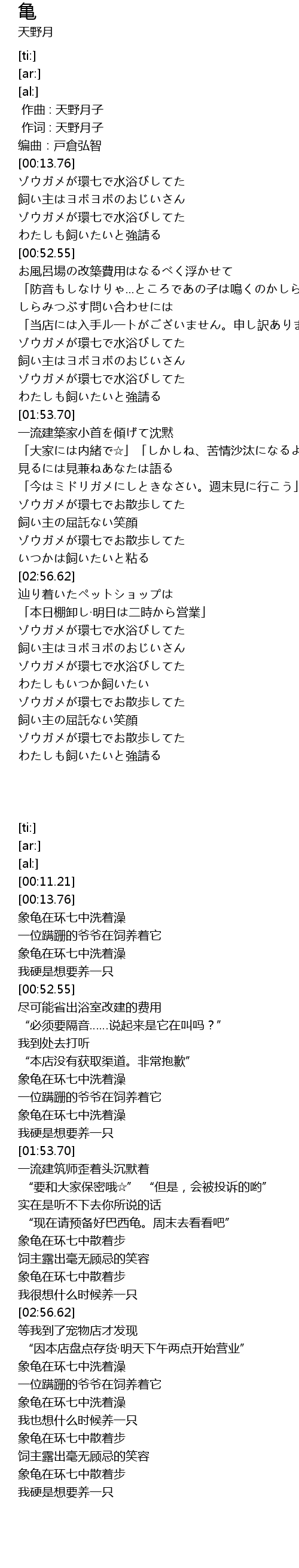 | [00:40.13] | 象龟在环七中洗着澡 |