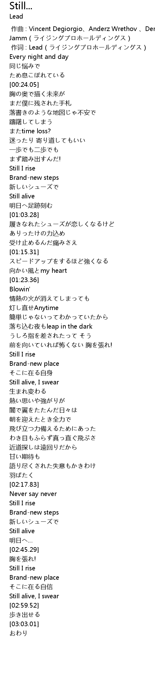 | [00:01.000] | 作词 : Lead(ライジングプロホールディングス) |