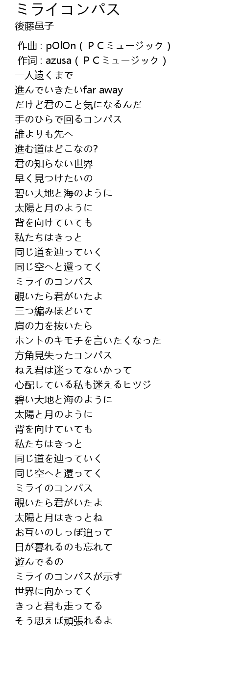 | [00:00.000] | 作曲 : pOlOn(PCミュージック) |
