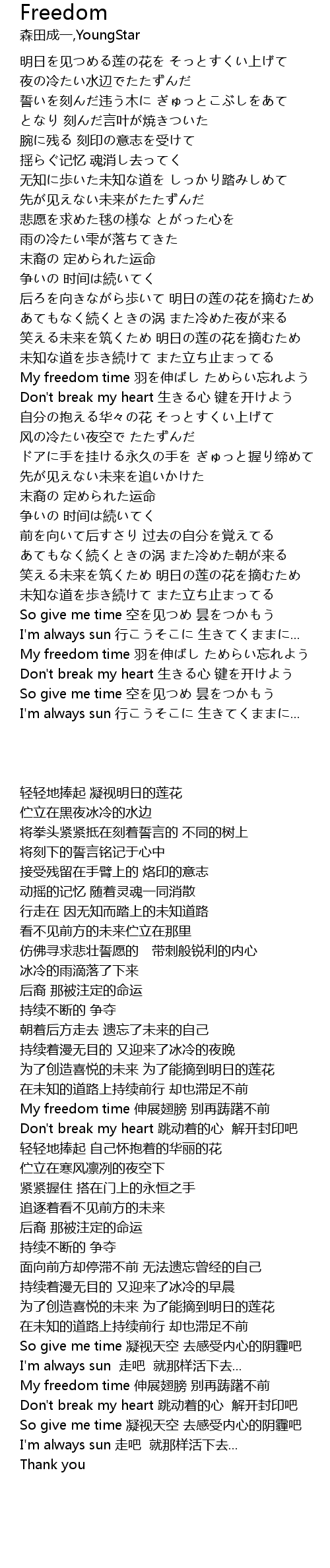 | [02:21.832] | My freedom time 伸展翅膀 别再踌躇不前 |