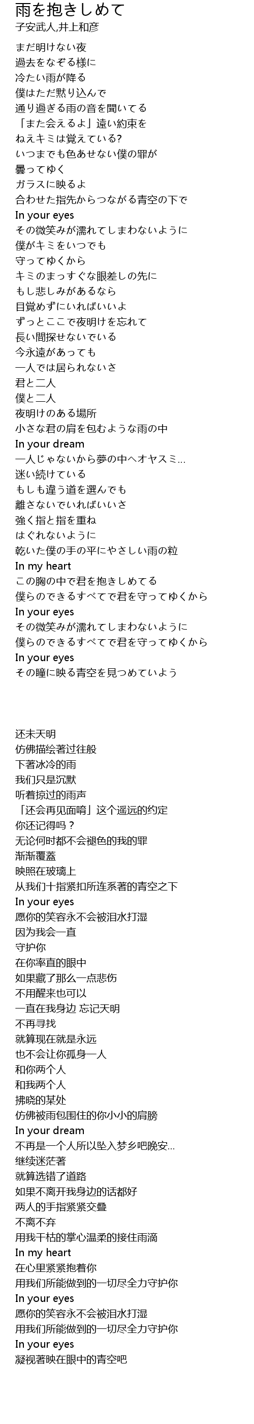 | [02:51.22] | 小さな君の肩を包むような雨の中 |