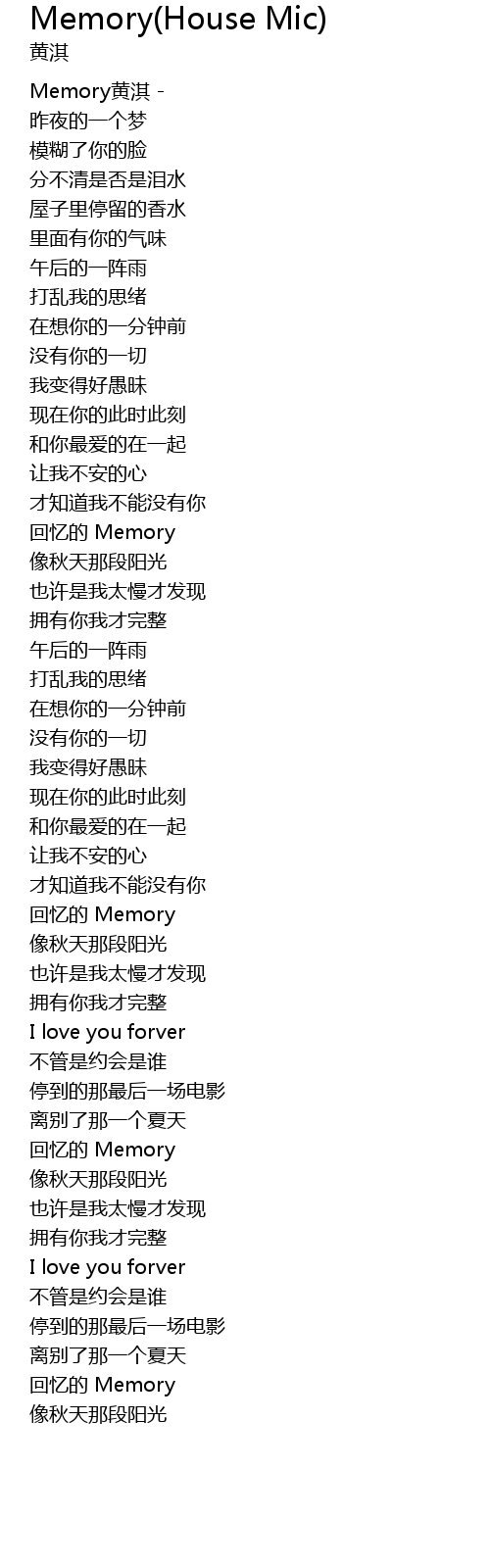 | [00:03.49] | Memory黄淇 - |