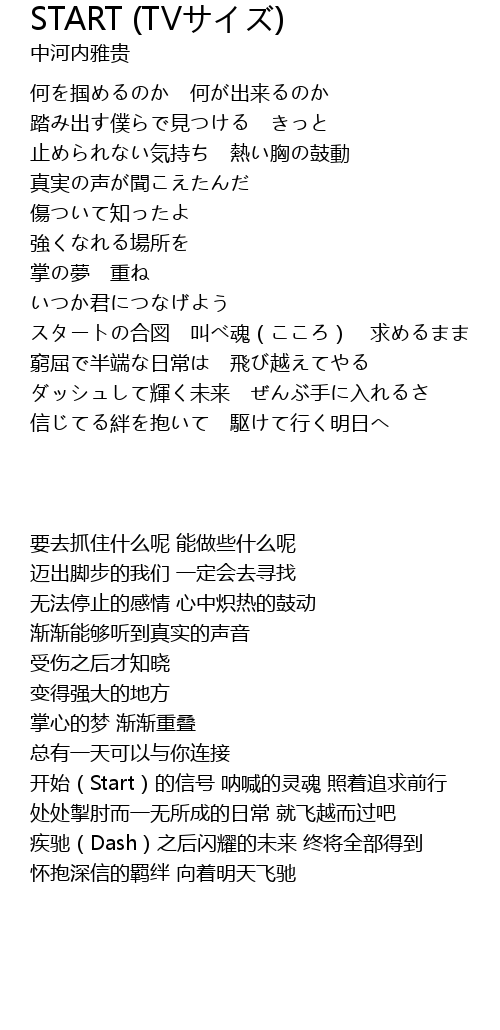 | [00:55.94] | スタートの合図 叫べ魂(こころ) 求めるまま |