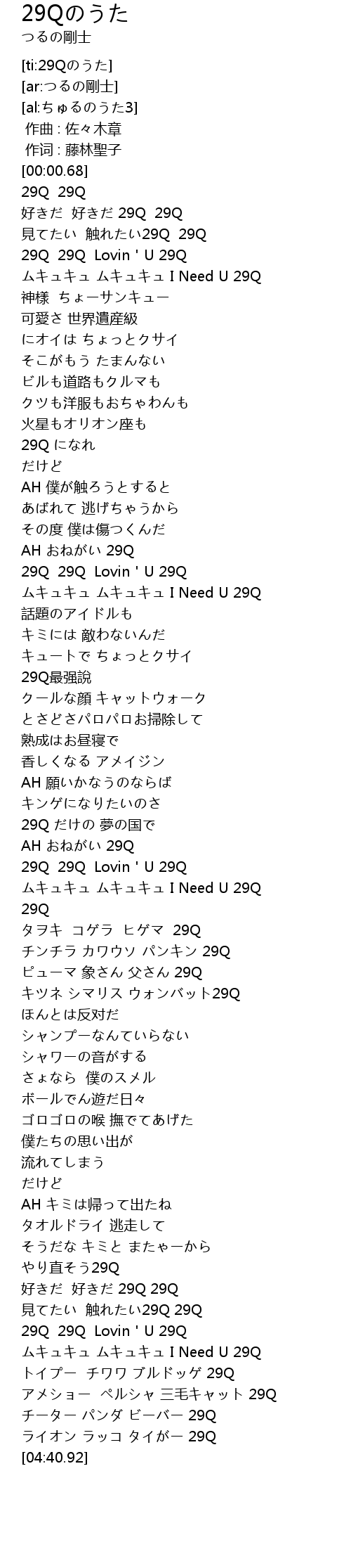 | [04:16.91] | 29Q 29Q Lovin'U 29Q |