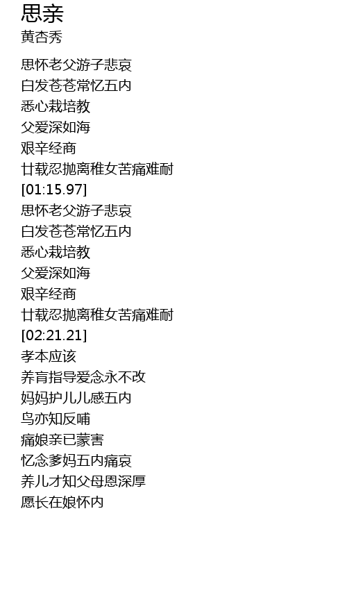 | [00:19.29] | 思怀老父游子悲哀 |