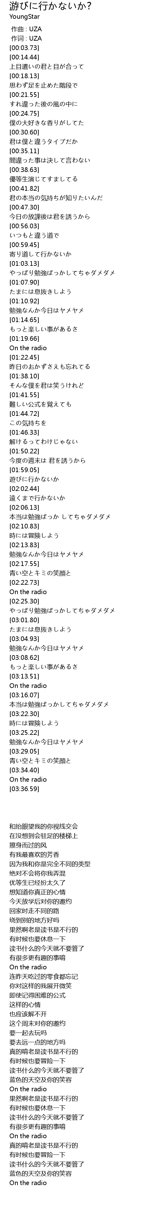 | [01:59.36] | 遊びに行かないか |