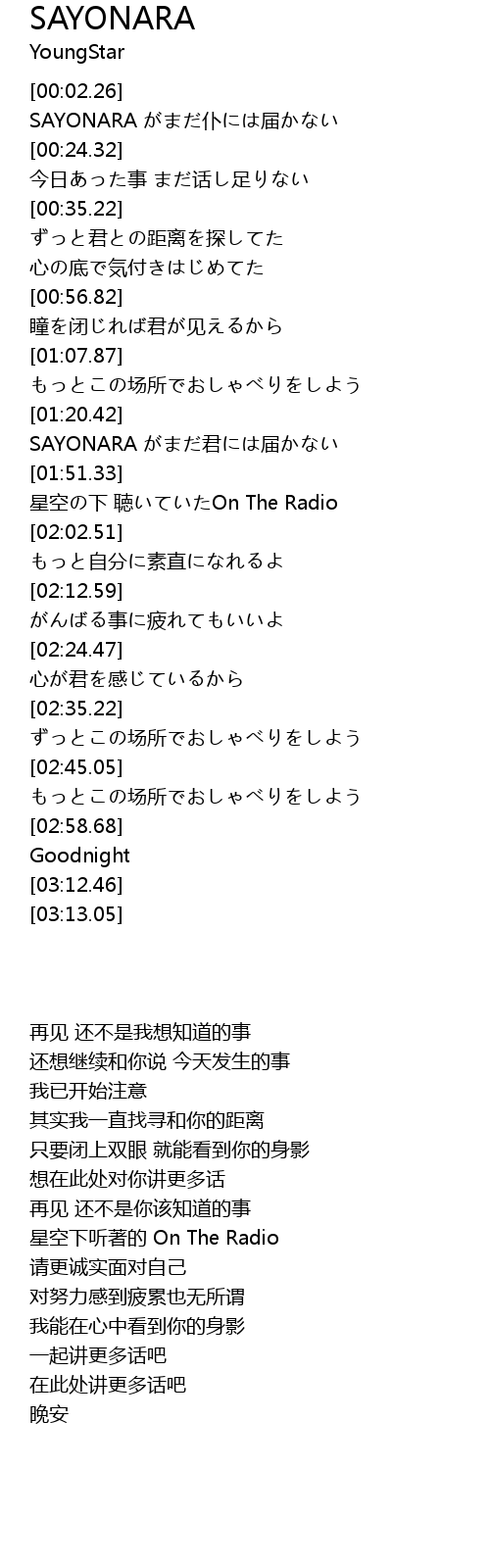 | [00:14.49] | SAYONARA pū jiè |