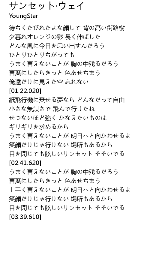 | [03:28.840] | 目を閉じても眩しいサンセット そそいでる |
