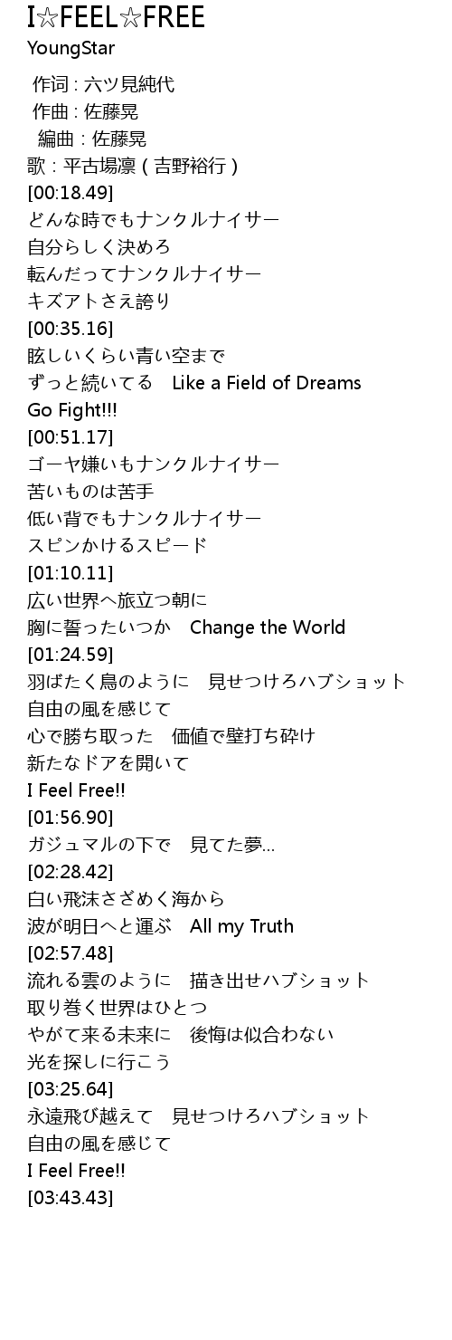 | [02:59.18] | 流れる雲のように 描き出せハブショット |