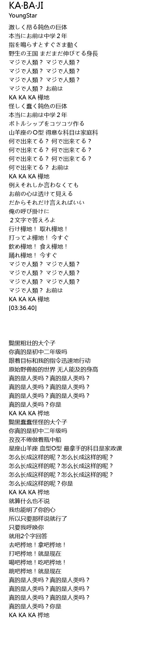 | [02:19.94] | KA KA KA 樺地 |