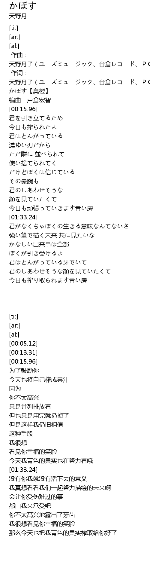 | [02:44.81] | 今日も搾り取られます青い房 |